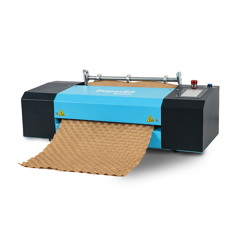 PaperEZ 壓泡紙機(Bubble Machine)自動將牛皮紙卷或風琴紙擠壓形成3D且富有彈性凸起結構的壓泡紙環保緩沖材料,可自動出紙、自動裁剪、自動記米,也可配合腳踏進行操作控制,壓泡紙在物流運輸中起到有效緩沖、避免包裹互相碰撞的作用。在自然環境下堆肥,可完全降解成水和二氧化碳,對環境不會造成污染。