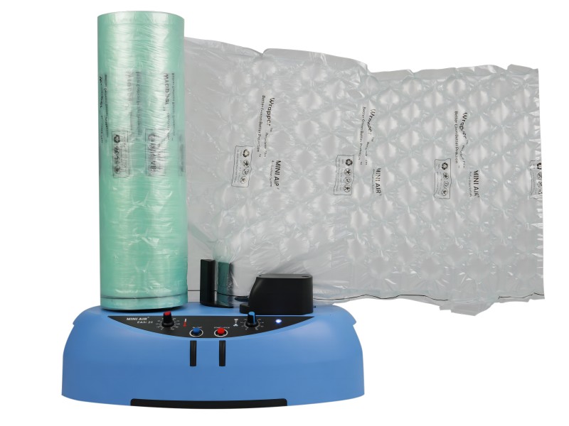 MINI AIR EA2迷你型緩沖氣墊機是一款小巧多功能的智能緩沖氣墊機。可用于氣泡枕、葫蘆膜等多樣式緩沖氣墊膜充氣。內置光電感應,智能探測無膜自動停機,環境溫度感應自動調節熱封溫度,性能強大,一鍵即可啟動,無需預熱。